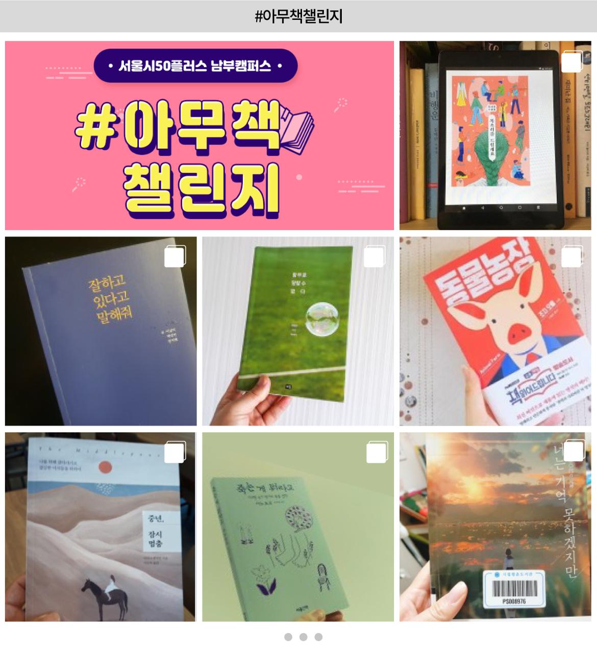 무려 265분이 참여해주신 원 북 추천 이벤트, #아무책챌린지. 시간, 장소 구애없이 함께 나누는 독서 인증샷으로 여러분의 다양한 취향과 생각들을 공유할 수 있었는데요. 50+의 책사랑을 체감할 수 있는 재미있는 시간이었습니다♡