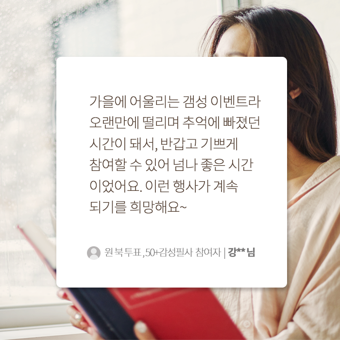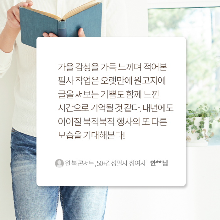 지난 여름부터 진행되었던 제3회 북적북적 캠페인이 10월 30일 <50+감성필사> 전시를 마지막으로 마무리되었습니다! (WoW!)