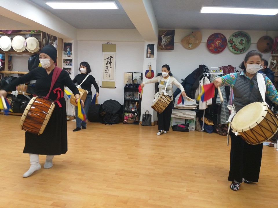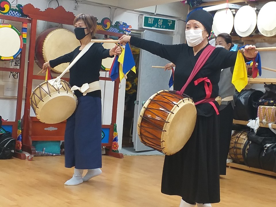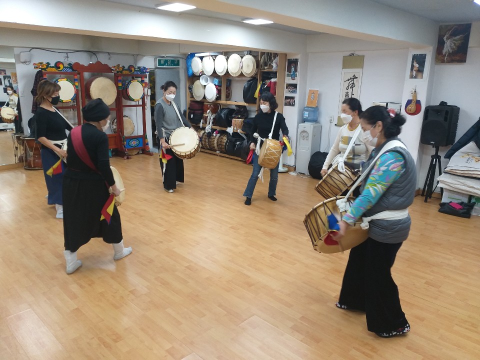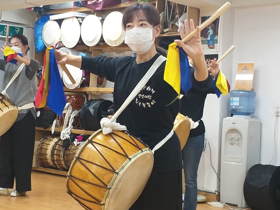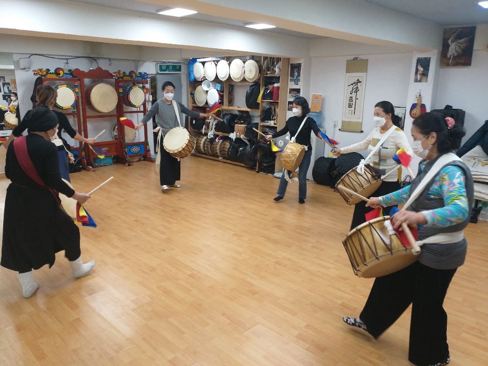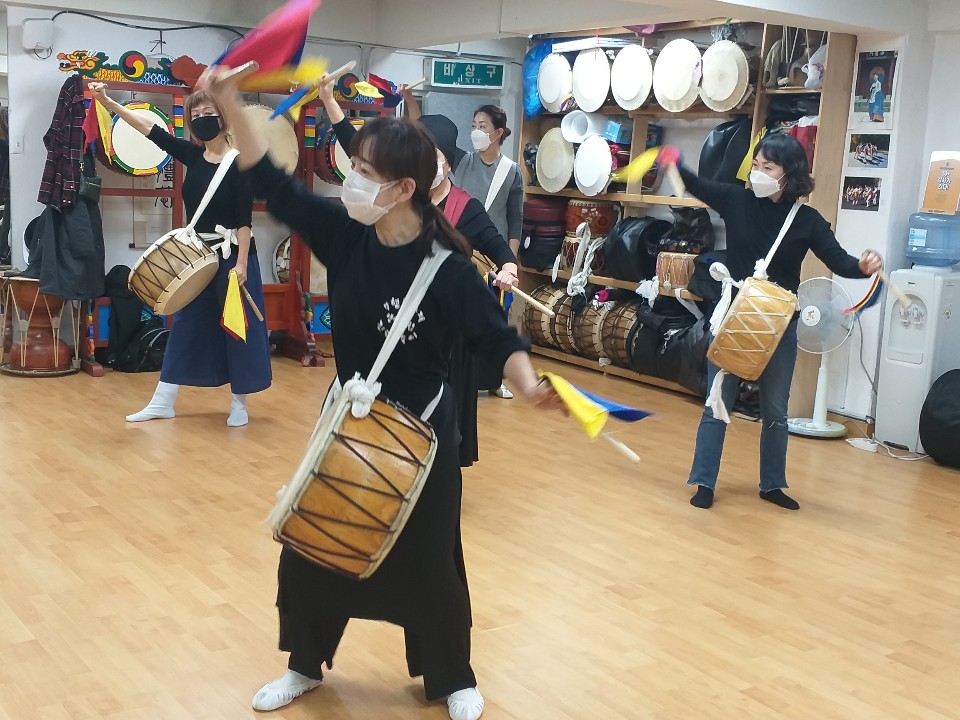방역 때문에 마스크를 벗지 못하고 이렇게 몸을 움직이는 일이 쉽지만은 않을 텐데 그래도 땀이 송골송골 맺히는 이마와 모두 생글거리고 웃는 눈을 마주하니 무엇도 이 열정을 막을 순 없다는 생각이 듭니다. 쿵쿵거리는 북소리를 따라 저도 어깨춤을 추고 싶군요. 어느 분 말씀처럼 우리 몸에 우리 가락이 배어 있어서 북소리, 장고 소리 들으면 몸이 반응하는 건지도 모르겠네요.