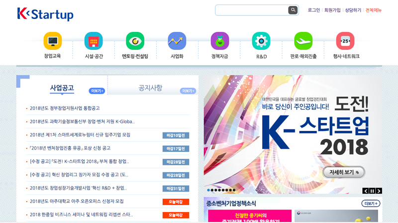 2018년 정부 창업 지원사업 통합공고(클릭)