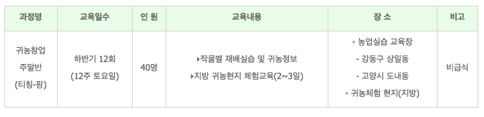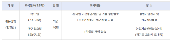 서울특별시농업기술센터는 2018년 하반기 귀농창업 주말반과 평일반 참여자를 모집합니다.