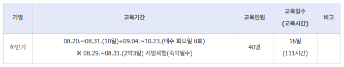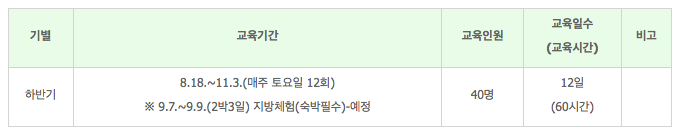사업계획서 등의 서류 심사를 통해 참여자를 선발하며, 교육 일정과 커리큘럼은 아래와 같습니다.