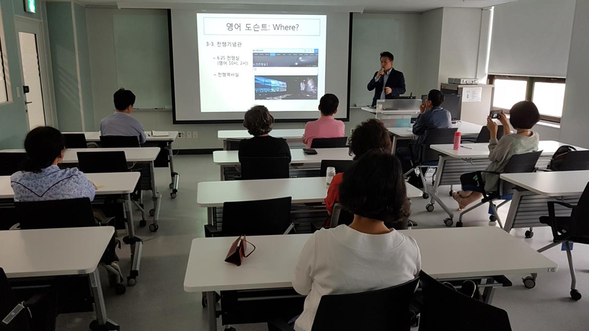 '잉글링크 커뮤니티'는 <영어도슨트 되기>를 주제로 ① 도슨트의 이해 ② 50+ 세대와 도슨트 ③ 사례로 보는 50+ 도슨트 활동 ④ 영어도슨트 알아보기(영어도슨트의 자격요건 및 수요) ⑤ 영어도슨트 매뉴얼 ⑥ 영어도슨트의 현장 탐방(전쟁기념관 탐방) ⑦ 실습 및 코칭받기로 구성되었다. 이 과정은 외국인 관광객을 응대하는 영어도슨트로써 활동을 돕는 기초 과정이다.