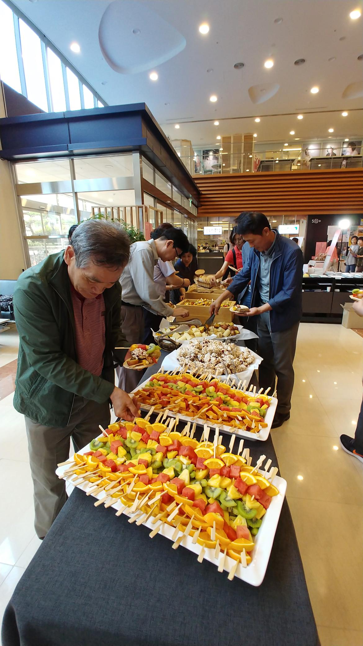 오전 행사들이 진행되고 모두의 축제 참석자 전원에게 건강하고 센스 있는 점심이 제공되었다. 뻥튀기 접시에 고구마, 감자, 꼬치, 과일 등 건강하고 싱싱한 유기농 음식들이 넉넉하고 풍성하다. 눈과 입이 맛있는 축제는 즐거움이 한층 배가 된다.