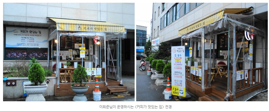 “이런 거 하나 차리려면 얼마 들어요?” “바리스타 자격증 땄는데 창업할 수 있을까요?” 이런 질문을 많이 받는단다. 그는 창업자금 3천만원. 그리고 1년치 월세(일시불)와 모든 기계를 중고로 구입해서 시작했다고 한다. 공매로 임대를 했기 때문에 권리금도 없고 보증금도 없어서 가능했던 일이다. 매장 내부 3평, 외부 3평 규모에 창업비용 최소 5천 이상은 아꼈다고 자부했다.