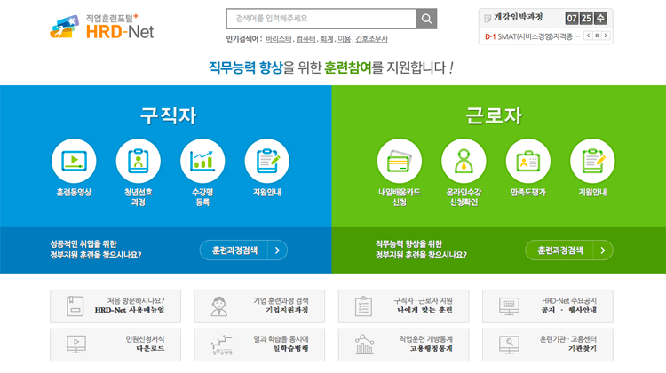 내일배움카드제와 같은 각종 직업교육 지원 정보, 훈련기관 평가 정보도 제공하니 직업교육 이수 계획이 있는 분이라면 반드시 들러야 할 정보의 허브라고 할 수 있습니다.