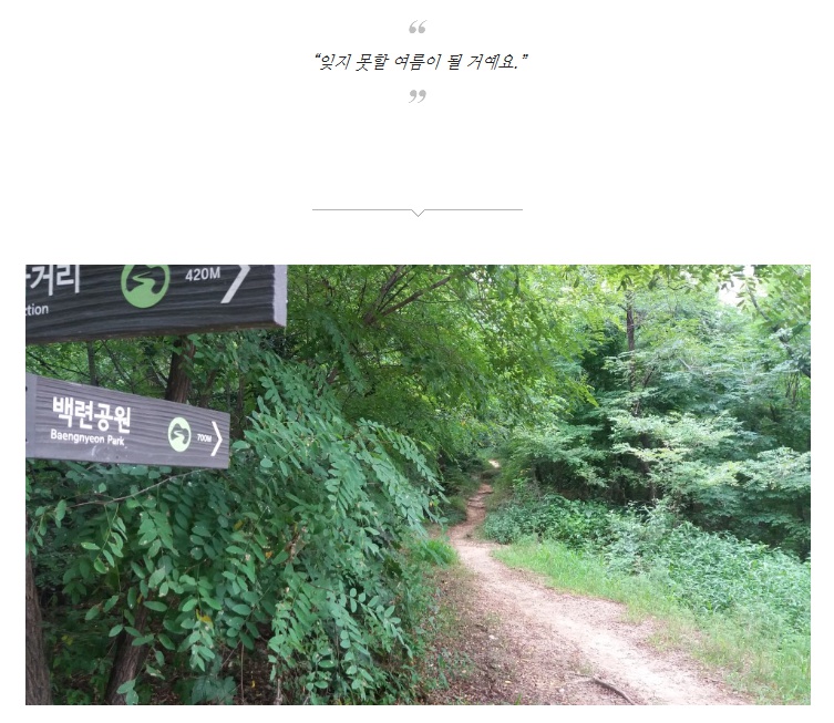 '등산’이 아니라 ‘입산’이라는 겸손한 강세훈 대표님의 말에 덥다고 땀 닦느라 놓친 주변 풍경과 나무들이 눈에 들어왔다.