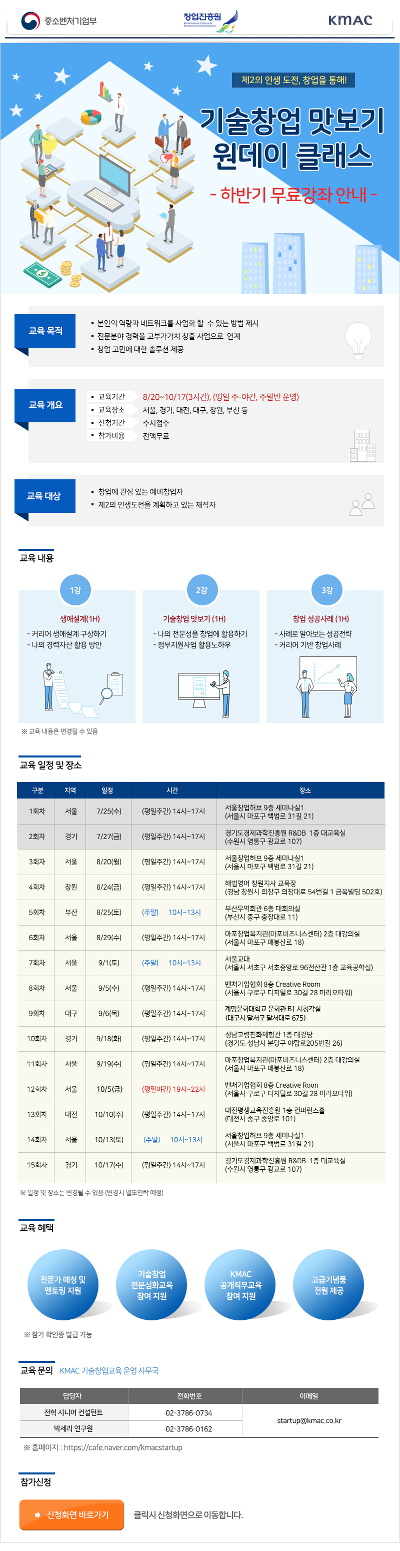 [창업진흥원] 기술창업 맛보기 원데이클래스 『하반기 무료강좌 안내』