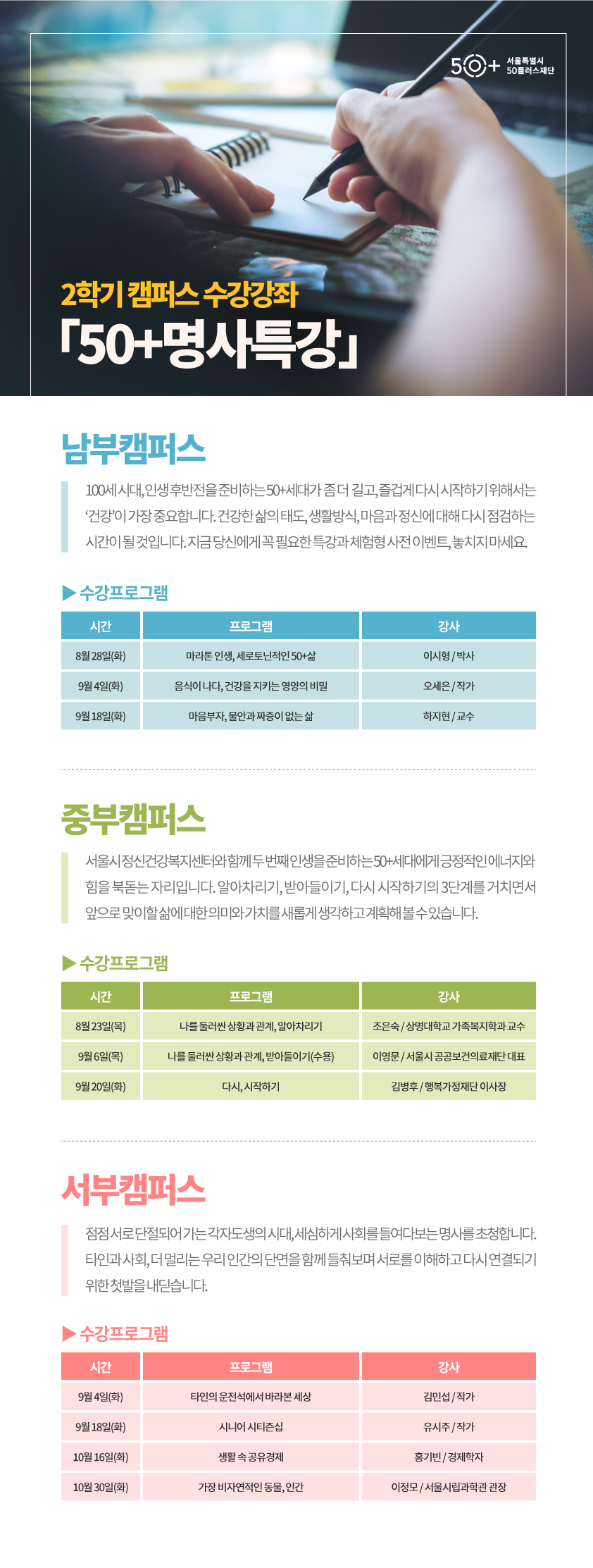 [재단]2학기 캠퍼스 수강강좌 『50+명사특강』 한눈에 보기!