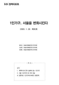 - 2030년 서울의 1인가구 비중은 25%에 달할 것으로 추정. 서울시는 1인가구가 일으킬 변화에 대비한 정책수단을 준비해야 함.