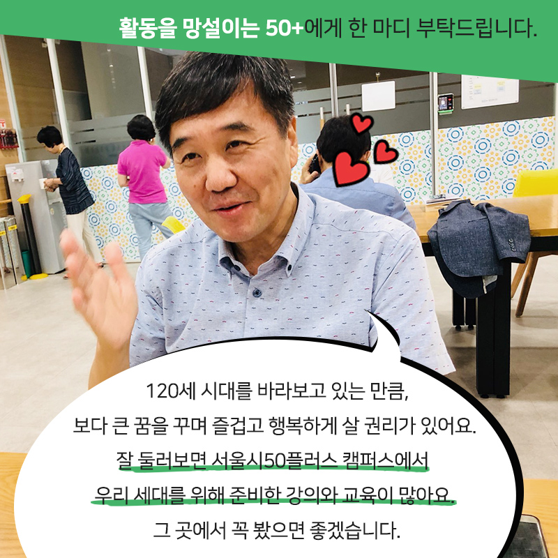 Q. 활동을 망설이는 50+에게 한 마디 부탁드립니다.