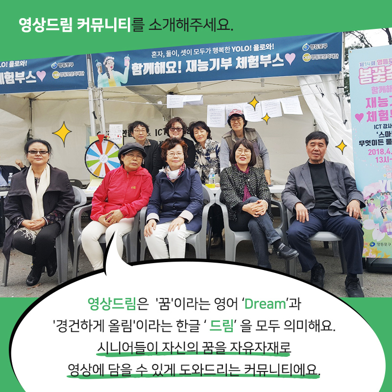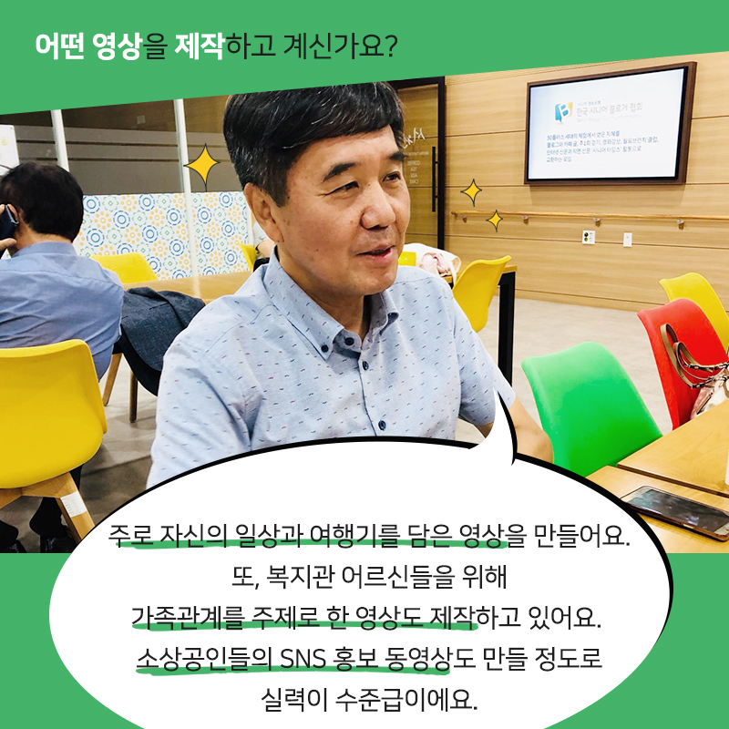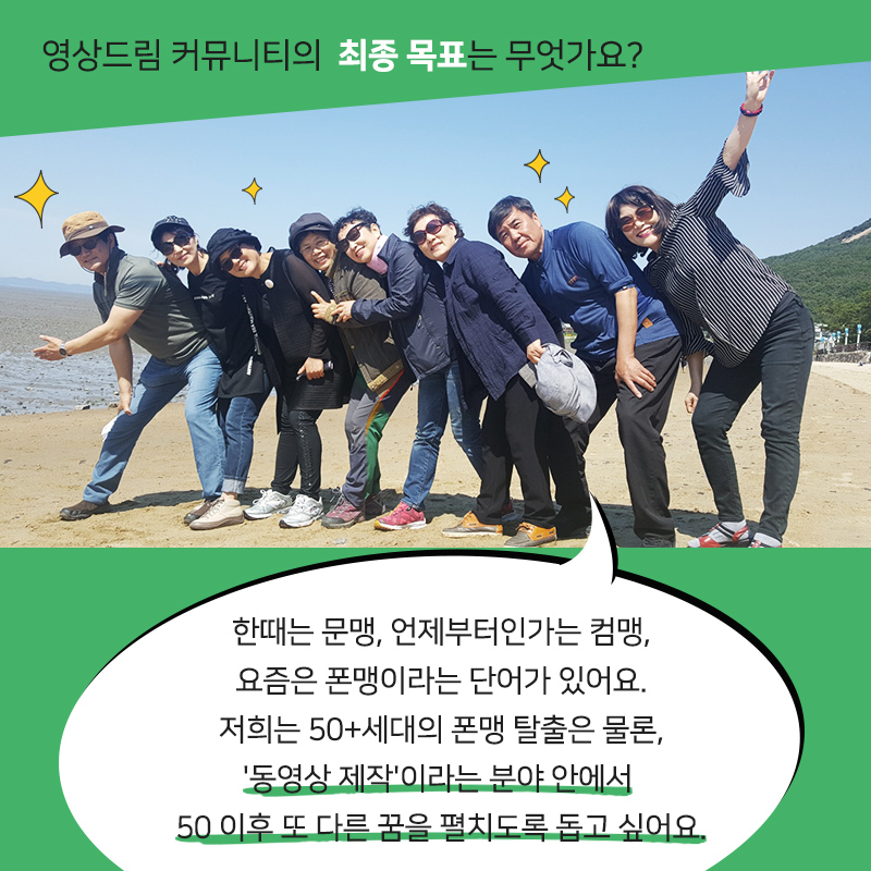 저희는 시니어들이 자신의 꿈을 자유자재로 영상에 담을 수 있게 돕고,
