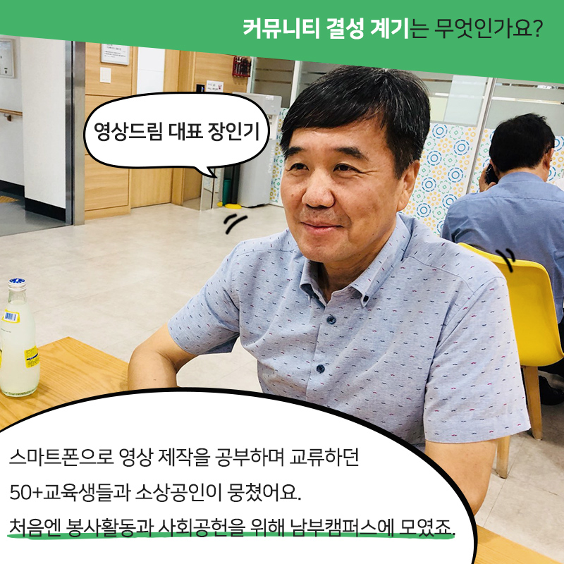 50+ 교육생들과 소상공인이 뭉친 모임이에요.