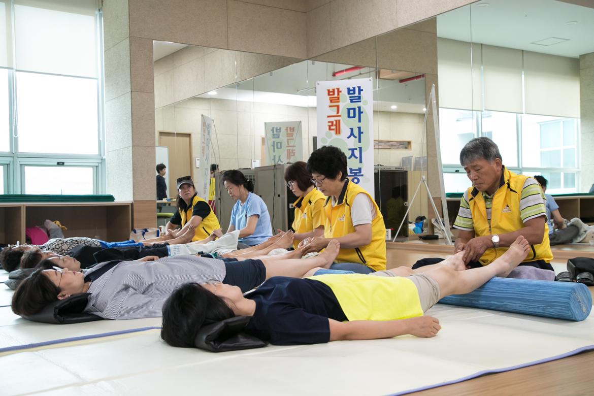 '발그레 발마사지 봉사단'은 4층 큰마루 교실에서 건강 발마사지 체험교실을 열었는데, 무려 49명이 체험하고 갔을 정도로 인기가 높았다.
