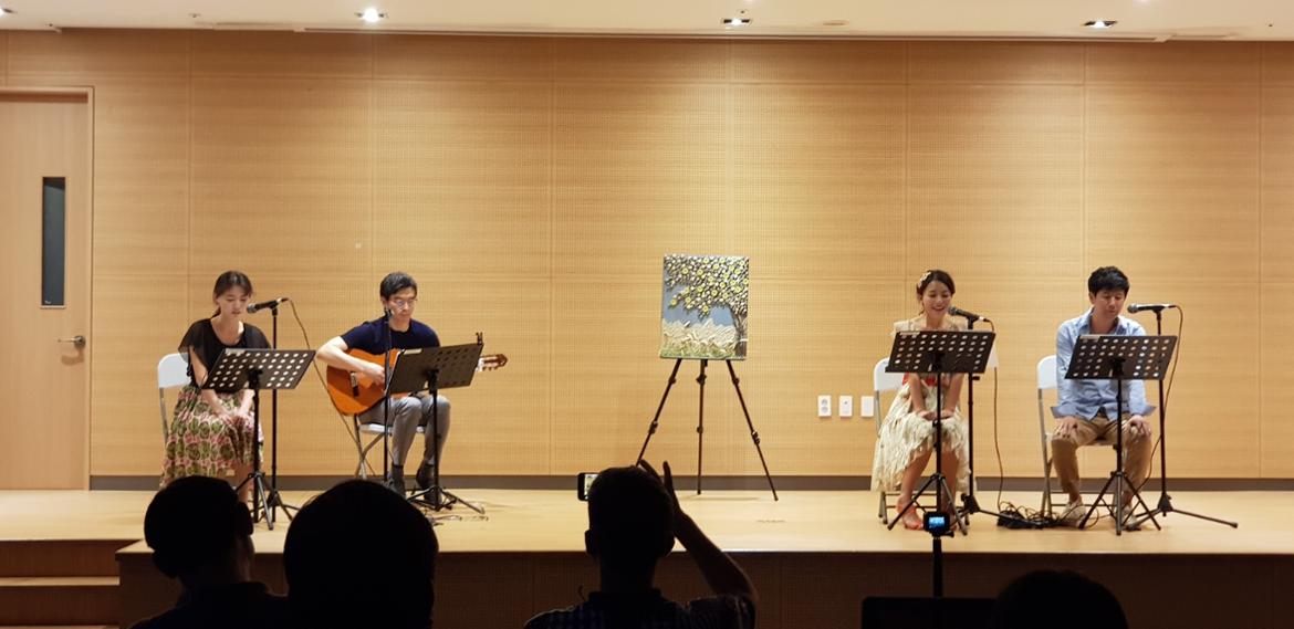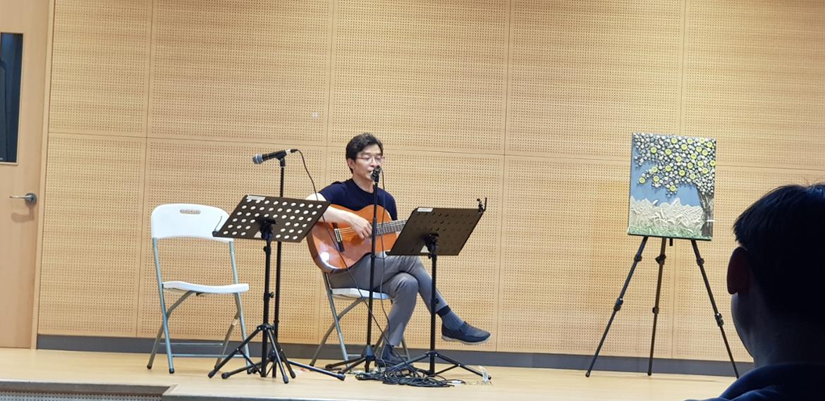 마지막은 극의 전반적인 흐름에 맞게 배경음악을 연주해주었던 기타리스트 김대현 씨의 멋진 라이브 공연. 김대현 씨는 50+인생학교를 졸업하고, 오플밴드 등 문화예술 분야에서 다양한 활동을 하고 있다. 생각해보니 <금요낭독극장>을 기획하고 만든 이들의 공통점은 바로 '서부캠퍼스' ^^