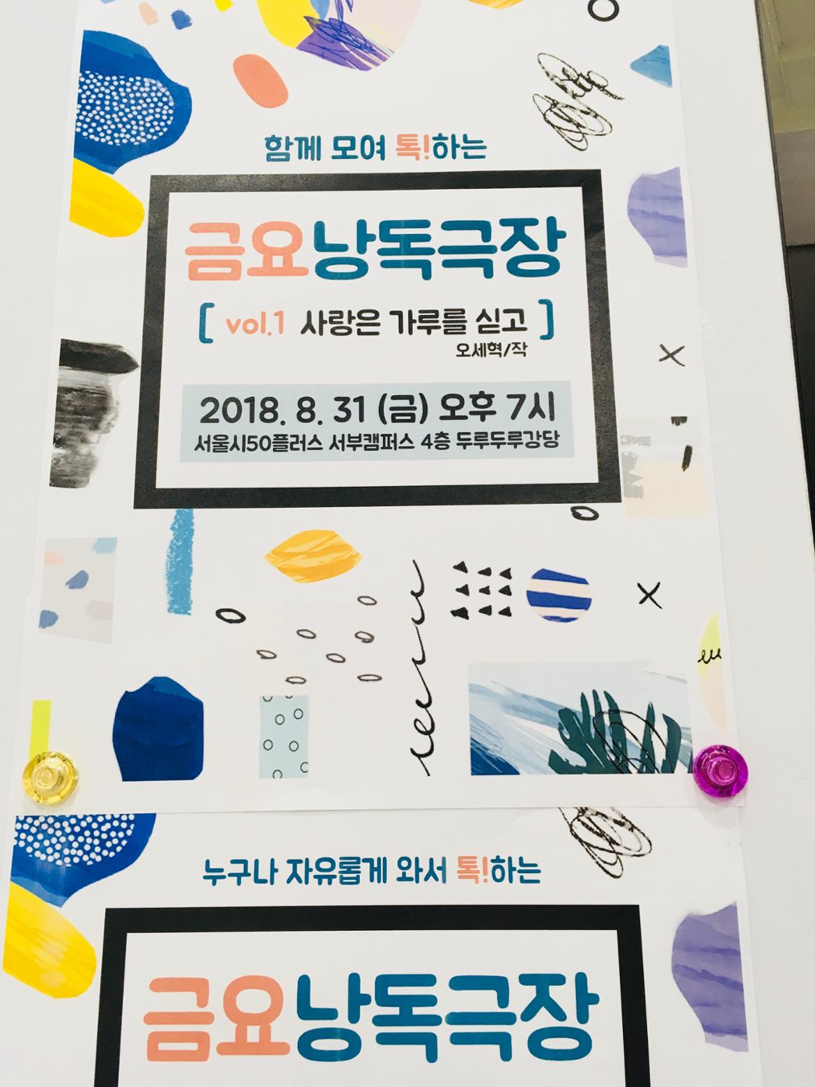 Q. 서울시50플러스 서부캠퍼스 2학기 교육과정 중 하나인 <마이웨이 연기교실> 강좌가 개설되었는데, 금요낭독극장과 어떤 연결이 있나요?