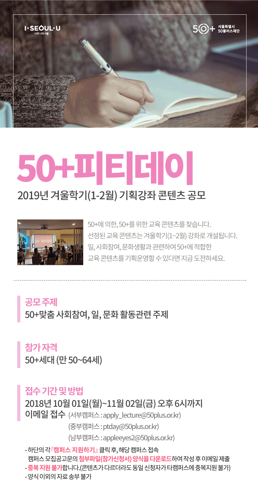 [서부/중부/남부]<50+피티데이> 겨울학기(1~2월) 기획강좌 콘텐츠 공모