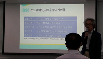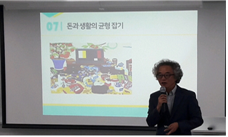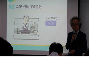 오늘 강좌에 대해 “화폐, 돈의 속성 같은 흥미로운 주제로 사람들이 받아들였을 것 같다. 신용, 화폐경제를 통해 돈 없는 게 내 탓만은 아니다. 물론 내가 노력해야 되는 것도 있지만 어쩔 수 없는 측면도 있다. 어쩔 수 없는 측면이란 것이 웬만큼 내 노력이 강하지 않으면 뚫고 나가기 쉽지 않다. 신용, 화폐경제를 통해 그런 것을 일깨워 주려는 것이 목적이다. 서드 에이지로 살다보면 이런 문제가 있고 해결 못할 문제는 아니다 라는 것을 애기하고 싶었다. 문제를 들으면서 각자 나는 어디에 해당하나 나는 이 문제를 어떻게 접근하고 있나를 한 번 생각해 볼 수 있는 기회가 되면 좋겠다.”고 소감을 밝혔다.