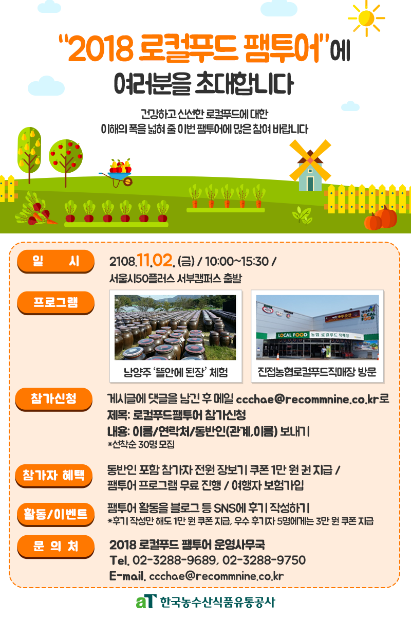 ☎ 02-3288-9689 (로컬푸드팸투어 운영사무국)