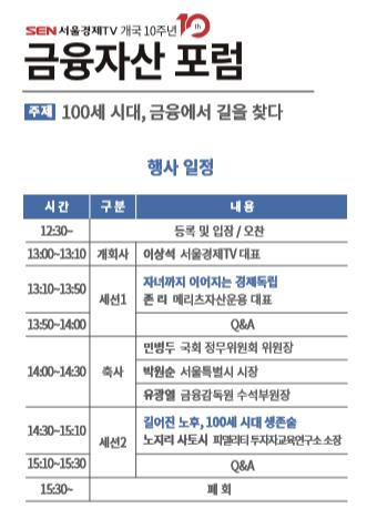 서울경제TV에서 국민들의 경제자립을 위한 금융자산포럼-100세 시대, 금융에서 길을 찾다를 개최합니다.