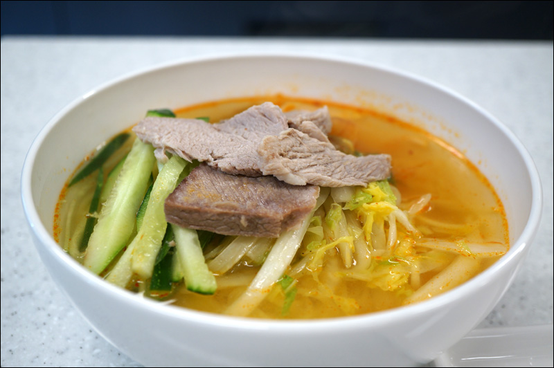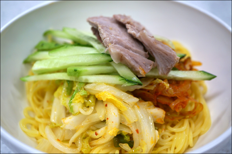 5. 그릇에 국수와 육수를 담고 고명을 올린다.