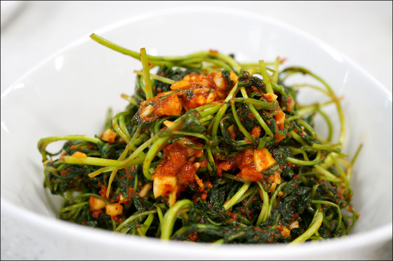 영채는 우리에게는 낯선 채소이지만 함경도에서는 김치나 겉절이로도 담궈 먹는 흔한 채소라고 한다. 김경빈 강사는 그리운 고향의 맛이라고 소개를 했다. 이날은 데쳐서 간단히 나물로 만들었다. 쌉싸름하면서도 특이한 향내가 감미롭게 입안을 채우는 맛난 음식이었다.
