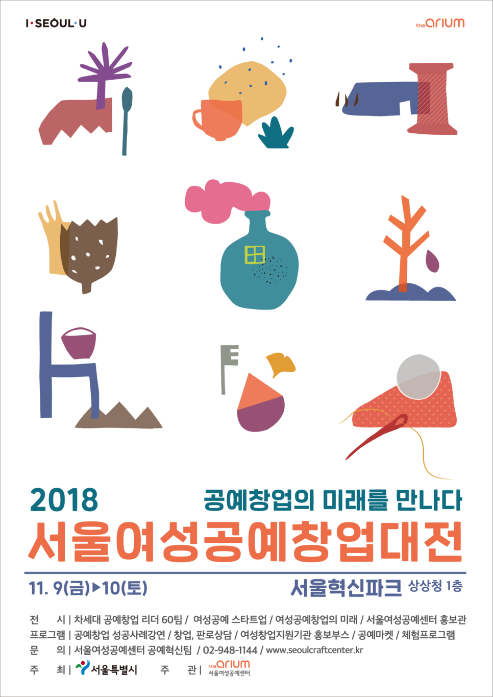 서울여성공예센터는 11월 9일(금)~10일(토), 불광역 인근 서울혁신파크에서 2018 서울여성공예창업대전을 개최합니다.