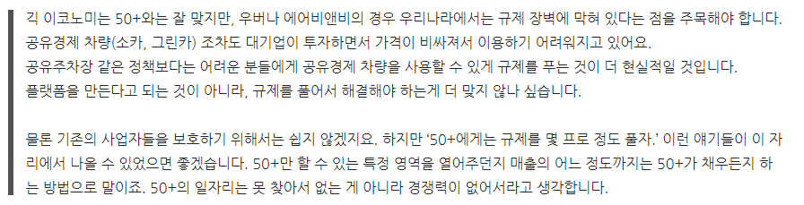 앞으로 재단, 그리고 캠퍼스를 통해 50+가 공유경제 스타트업에 다양한 방법으로 도전할 수 있는 기회가 마련되기를 진심으로 바란다.