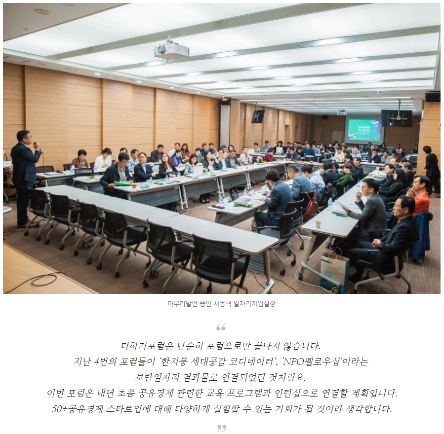 더하기 포럼이 성황리에 막을 내렸다. 단순히 포럼으로만 끝나지 않을 것이라는 50+캠퍼스와 관계자들의 발언에 힘입어,