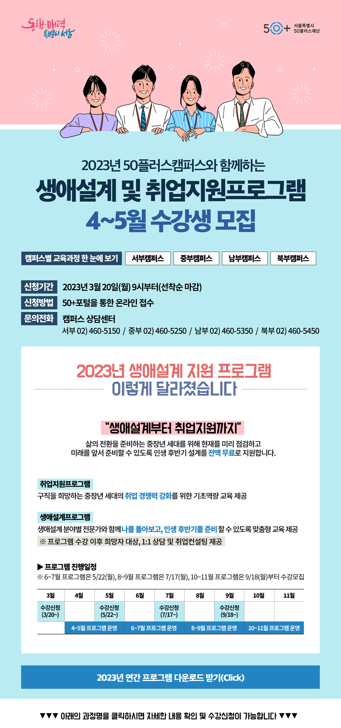 국민연금공단과 함께하는 평생연금프로젝트4.6.~4.20.10:00~12:00302층 교육실2C
