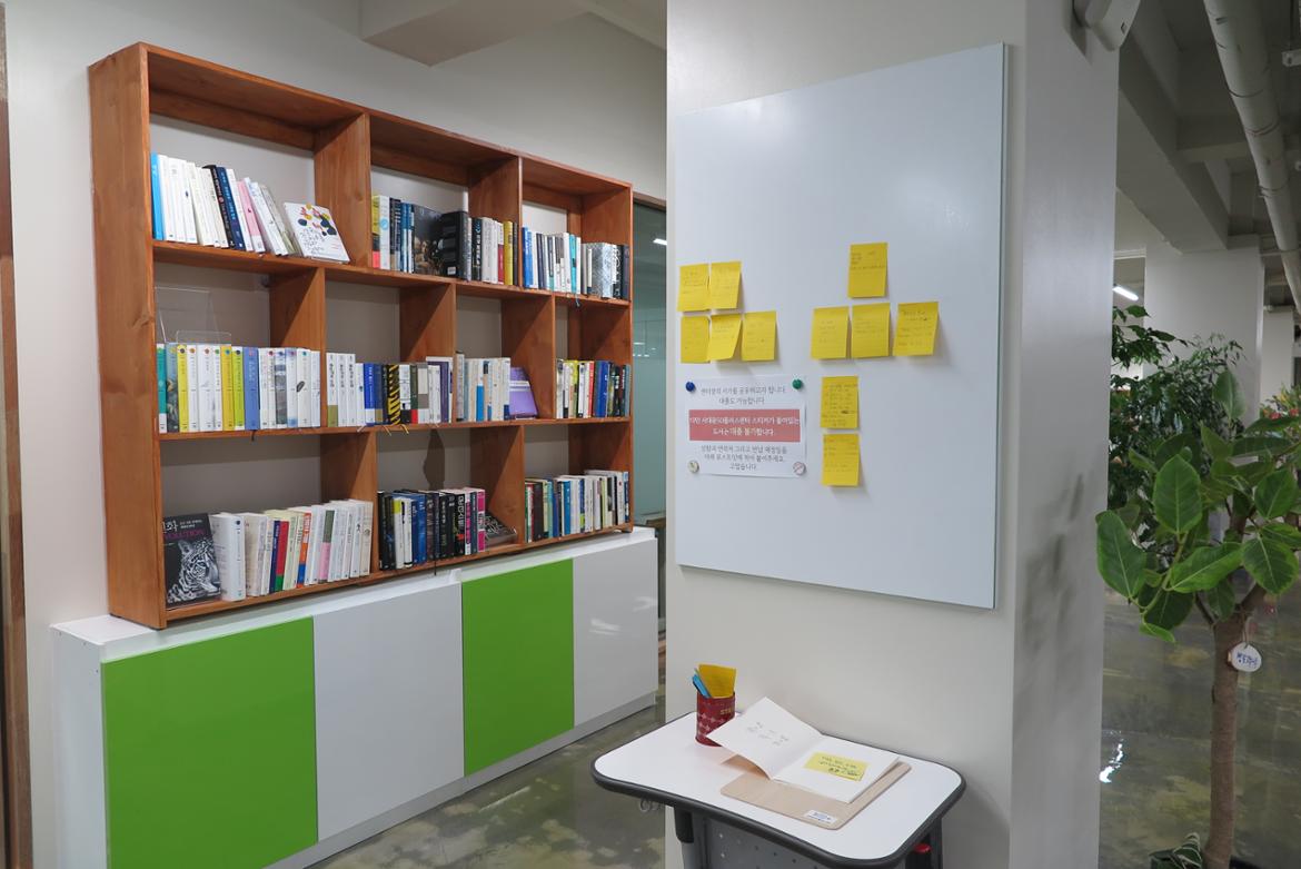 그 중 센터장 기증 도서로 꾸며진 공유서가 책은  대출도 가능합니다.