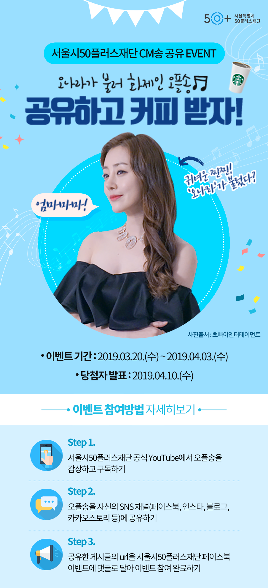 "SKY캐슬"에서 활약한 오나라 씨가 부른 서울시50플러스재단 CM송 '오플송'을 공유해주세요.