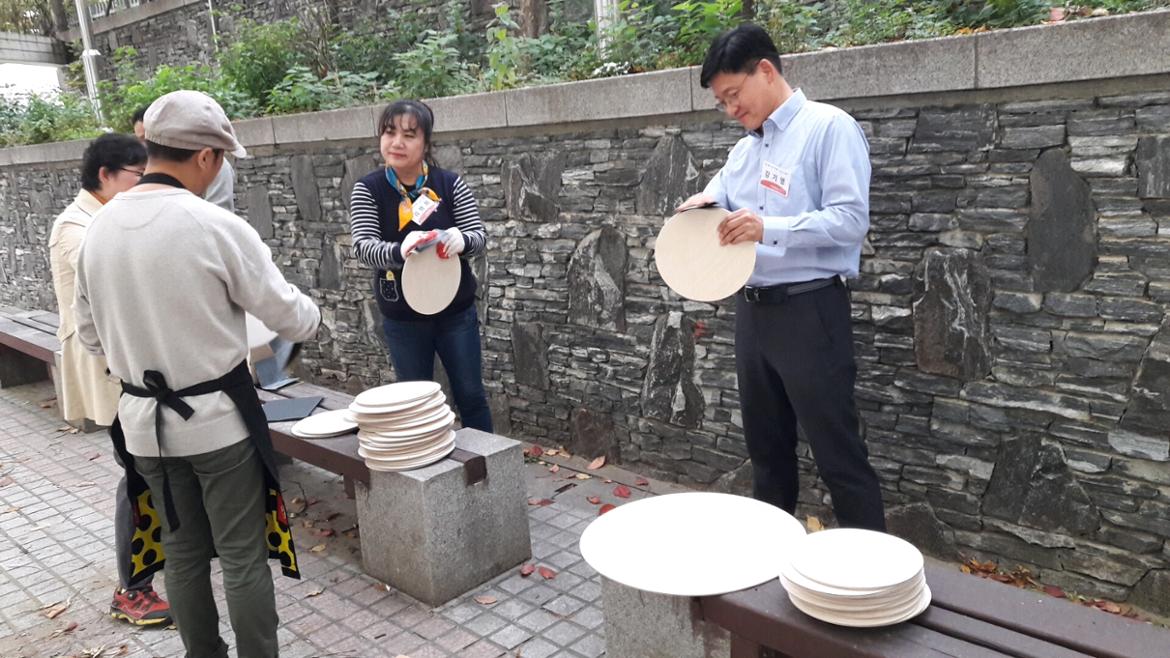 “같이 만들어가는 것이기 때문에 누가 해도 상관이 없습니다.”라는 디자이너는 “이동 형으로 다시 뜯고 붙였다하는 하는 기록 역사가 있었으면 좋겠다는 제안에 벽의 한계가 있지만 벽면에 붙일 큰 동그라미 원판을 준비했다. 이것은 연도를 구분할 것이다. 밑에는 각 커뮤니티 소개가 들어간다. 자작나무 합판에다 자석용 칠판 페인트로 칠할 것이다.”며 명패제작과정을 소개했다.