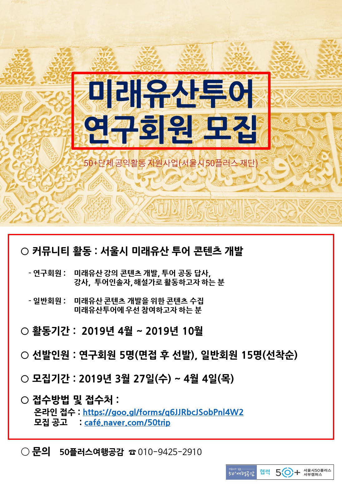 [서부]<50+여행공감>에서 미래유산투어 연구회원을 모집합니다!