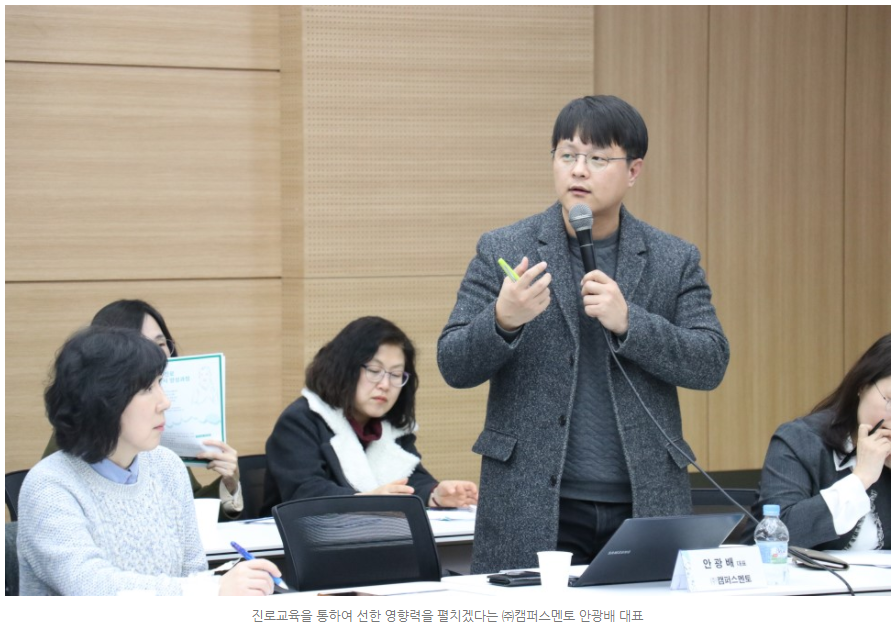 ㈜캠퍼스멘토는 "올바른 진로교육을 통하여 세상에 선한 영향력을 펼쳐나가는 기업" 이라는 철학을 갖고 있는 협력기관이다.