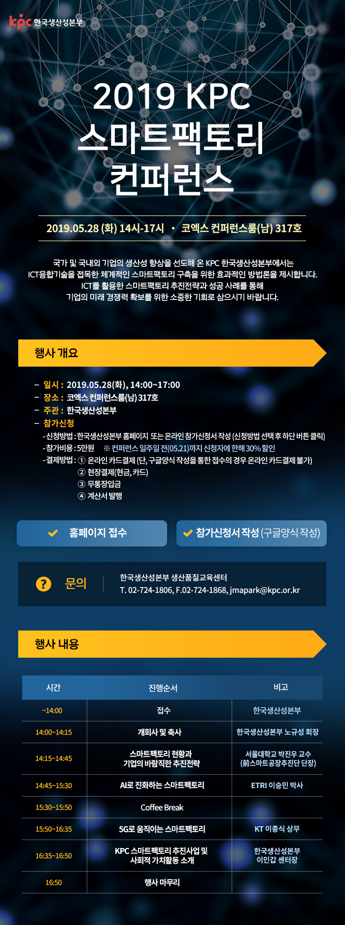 한국생산성본부에서 진행되는 스마트팩토리 컨퍼런스에 참가를 희망하는 50+세대분들을 모십니다.