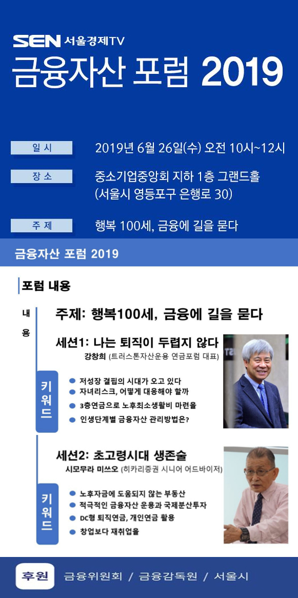 서울경제TV는 국민들의 경제자립을 위한 ‘금융자산포럼2019'’를 개최합니다.