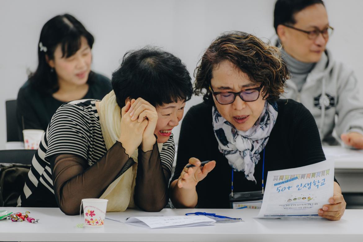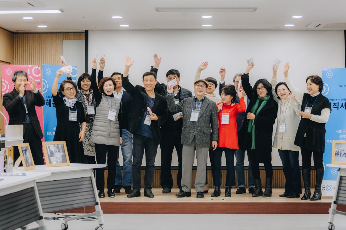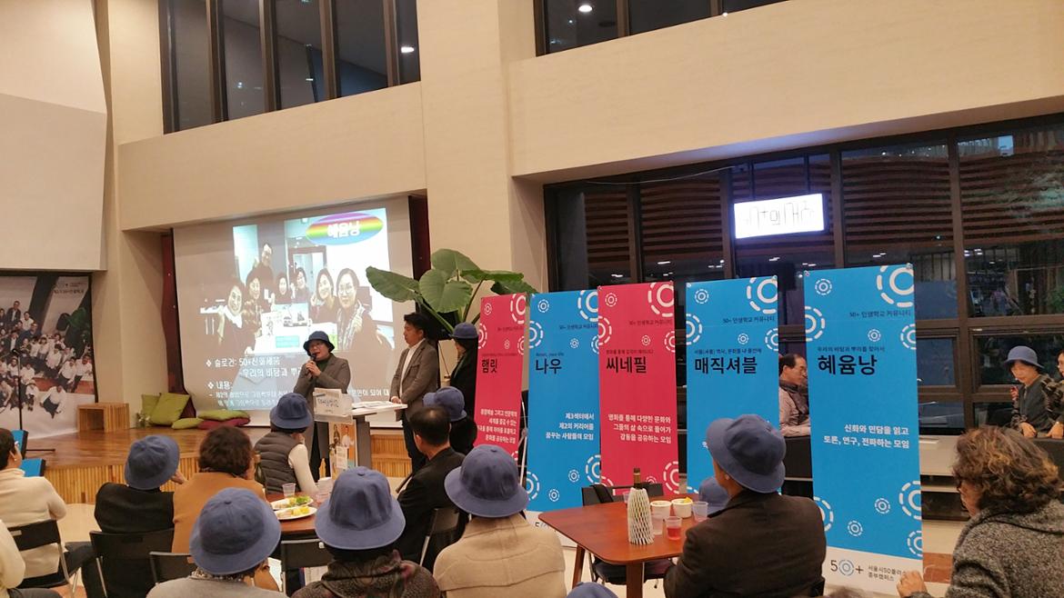새로운 삶을 꿈꾸는 50+라면 놓칠 수 없는 50+인생학교가 11월 23일 2기 졸업식을 하였다. 9월 7일 입학식을 시작으로 매주 목요일 12회에 걸친 프로그램이 진행되었고 드디어 마무리하는 날을 맞았다. 인생학교 프로그램은 1, 2학기에 각각 한번씩 1년에 두 번 진행되는데 입학 정원은 50명씩이다.
