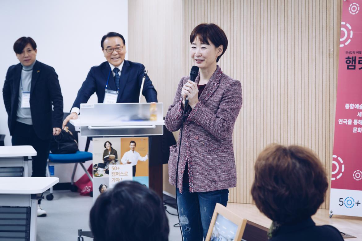 “50+인생학교란 저에게 있어 새로운 시작이라고 생각합니다. 그동안 알고 있던 가치, 성공, 행복에 대한 개념을 다시 정리하고 새로운 사람을 만난 곳이지요.”