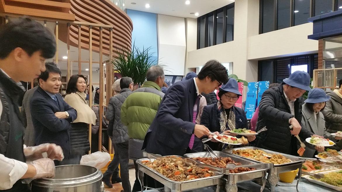 1층 50+의 서재에는 케이터링(Catering)이 준비되어 있었고 한 테이블에 1기와 2기가 함께 앉아 이야기꽃을 피우면서 음식을 나누었다.