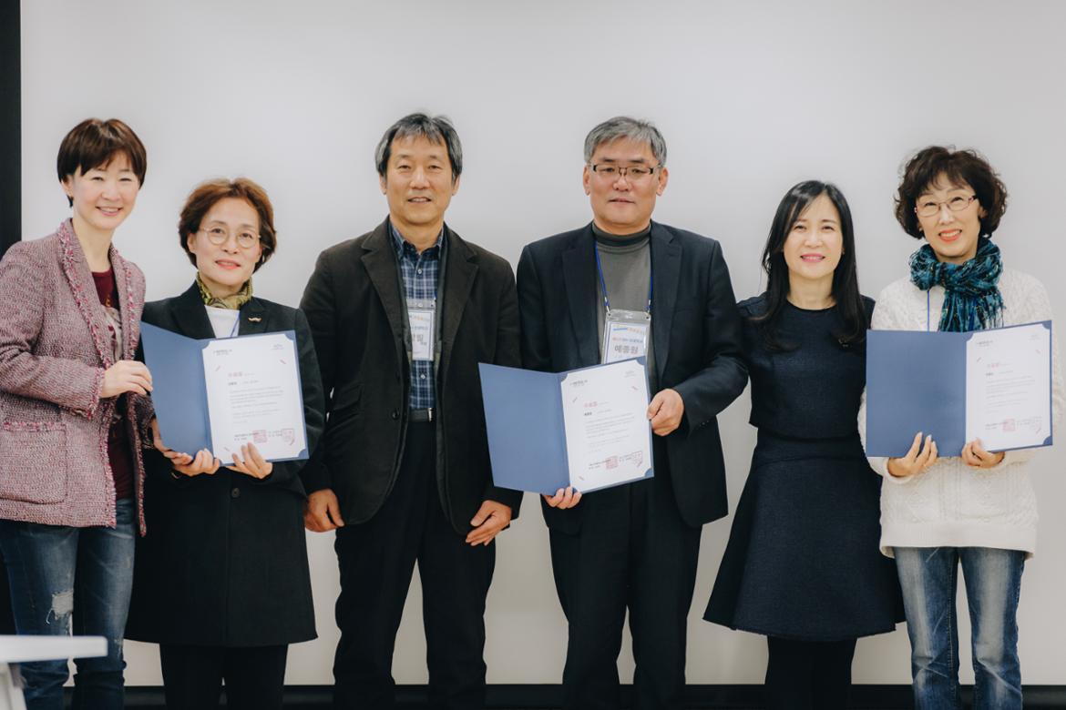 다음으로 1박 2일 워크숍을 포함하여 열두 번에 걸친 활동에 한 번도 빠짐없이 참석한 25명의 개근상 주인공들이 호명되었다. 학창 시절 성적 우수상보다 더 힘들다는 개근상을 중년이 되어 거머쥔다는 것은 대단한 성실성과 부지런함의 결과이다. 자부심 가득한 환호성이 무대를 흔들고 기념촬영 내내 미소가 가득하다. 상품도 있는 개근상은 정말 뿌듯한 좋은 상이다.