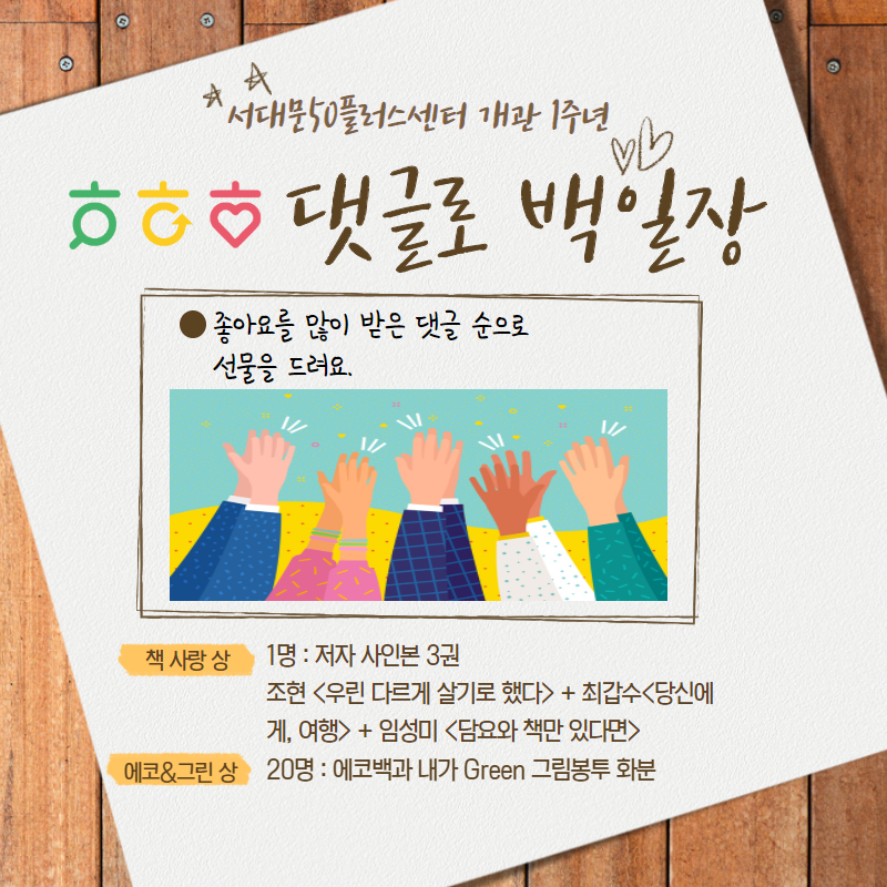 오늘은 서대문50플러스센터의 첫 생일이에요