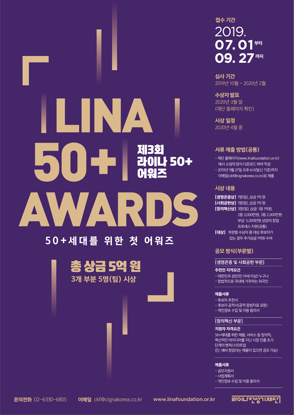올해 제 3 회를 맞는  『라이나50+어워즈』가 있습니다.