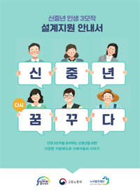 - 퇴직 전·후 신중년 세대의 새로운 인생 설계와 행복한 삶을 위한 각종 지원 서비스 및 지원 기관 정보를 망라한 가이드북.