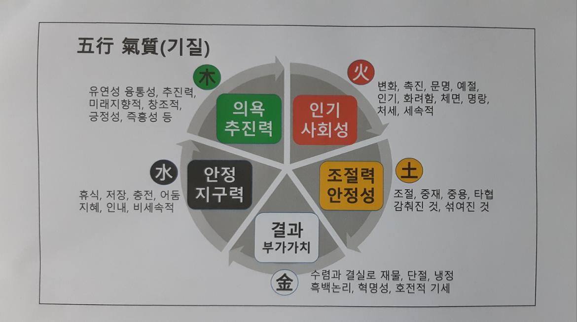 ▲오행으로 분류한 오행 기질 (사진 제공=수업 화면)
