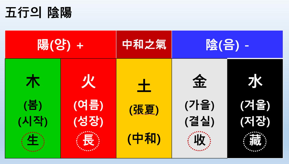 ‘음양과 오행론’은 자주 들어 본 주제이지만 자세히 살펴보자면 음양설은 우주나 인간의 분리된 모든 현상이 음(陰)과 양(陽)의 쌍으로 나타난다는 것이다(위-아래, 높고-낮음, 여자-남자).