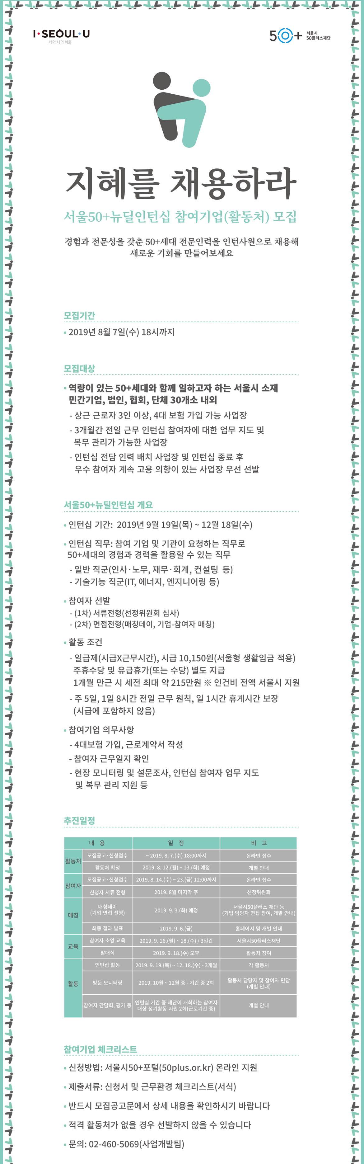 서울50+뉴딜인턴십 참여기업(활동처) 모집