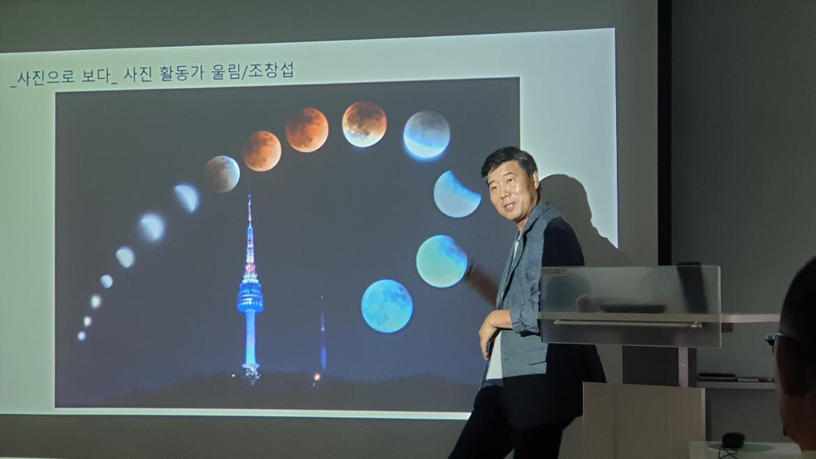 현장에서 활동하는 조창섭 강사는 자신이 직접 찍은 사진을 보여주며 기획의도와 촬영방법에 관한 내용으로 강의를 하고 있다.