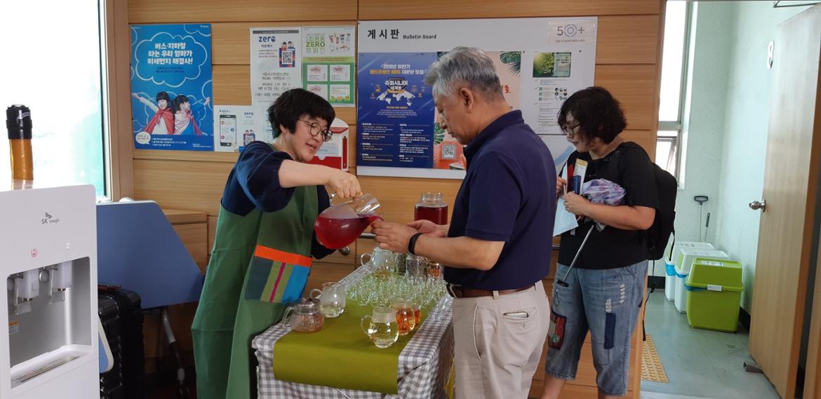 ▲꽃차 강사 이금희 선생님의 시원한 국화차가 참석자들을 반갑게 맞이했다.