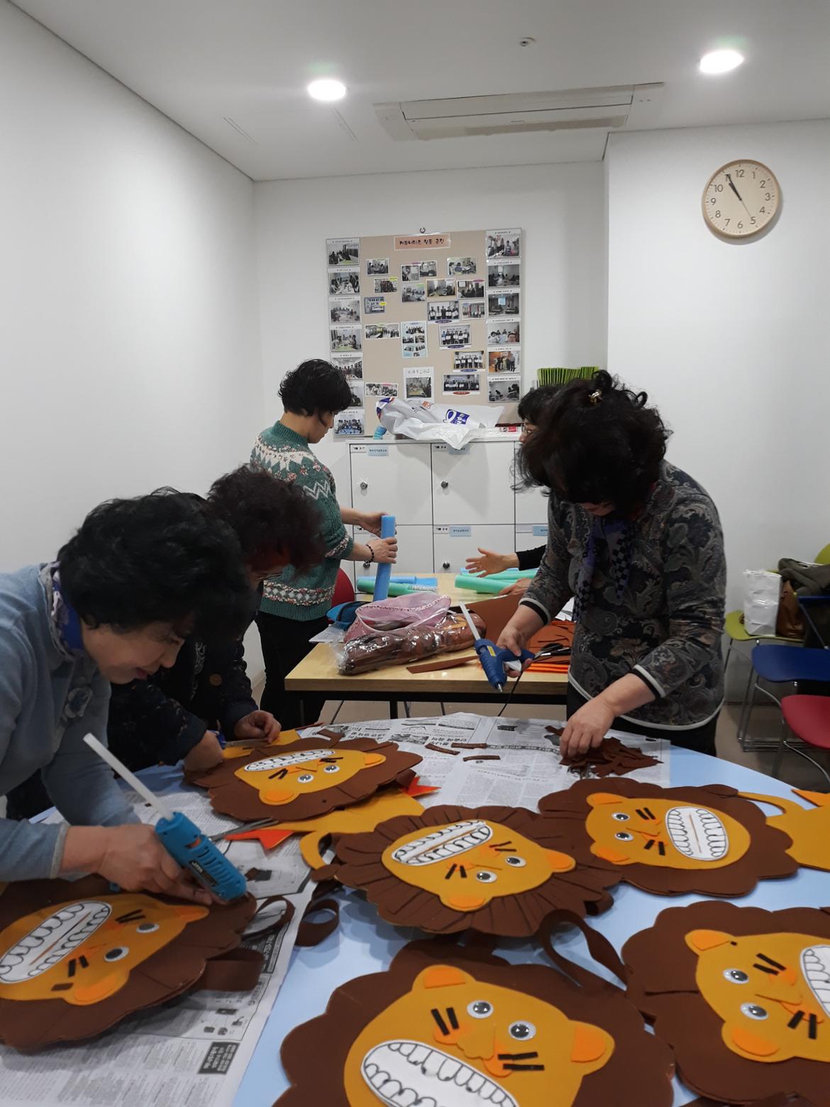 이번 주는 지난 주 완성하지 못한 동화구연을 위한 교구를 만드는 회원들의 손길들이 분주해 진다 .